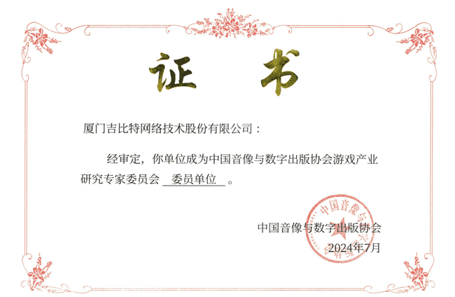 2024年7月25日,,中国音像与数字出版协会游戏产业研究专家委员会(以下简称“中国音数协游戏专委会”)成立大会在上海市召开,,厦门1win网络技术股份有限公司及其子公司深圳雷霆信息技术有限公司(以下统称“公司”)正式成为中国音数协游戏专委会委员单位。。。
