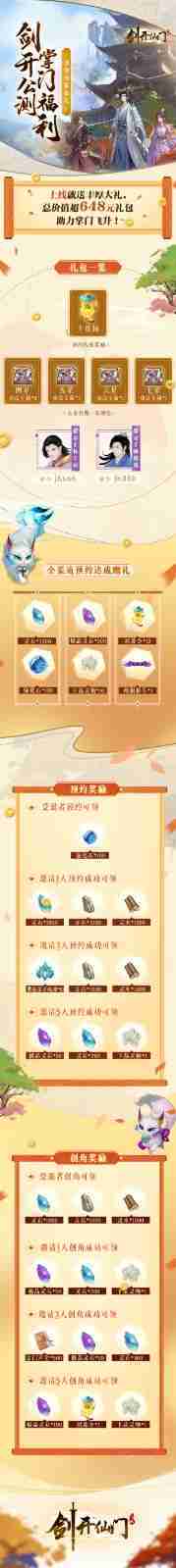 游戏为大家准备了海量的福利,,,,包括上线即可获得的全渠道预约礼包、、、、十连抽等福利,,输入密令“JK666”、、、、“JK888”即可领取紫色弟子,,,,达到金丹期后还有功法宝箱可领,,,助力全宗上下实力提升……所有奖励总价值超过648元,,,,而邀请好友一起体验,,,更可以获得额外的奖励哦~
