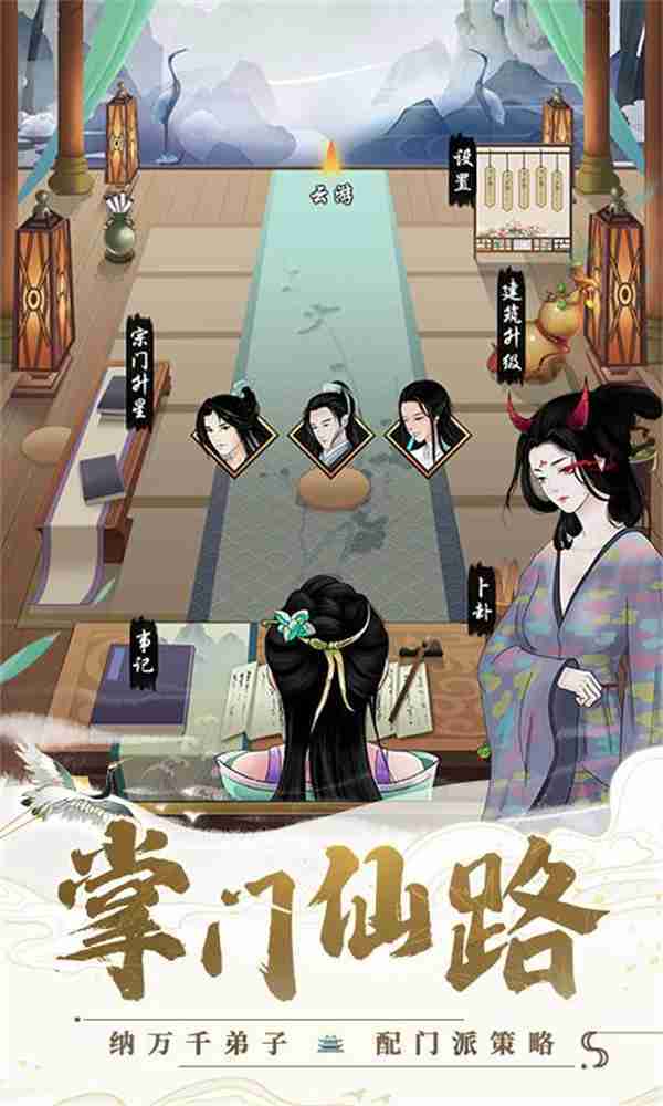 在游戏中,,,玩家需要作为掌门去经营整个门派,,,,可以兢兢业业,,,,也可以做个甩手掌门,,或者不务正业,,,寄情山水……总之一句话,,修仙不求人,,,,花式做掌门!!!!