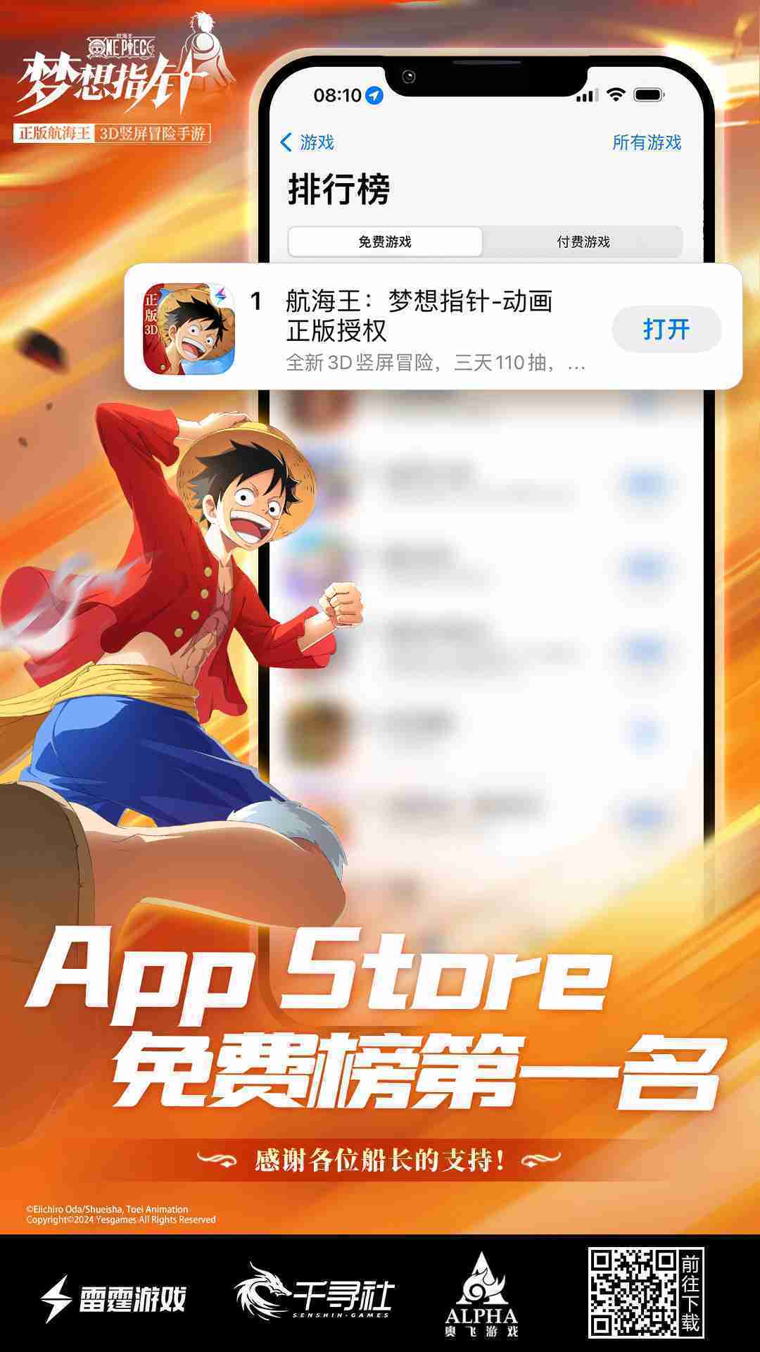 《航海王:::梦想指针》登顶App Store免费榜,,,公测福利汇总!!