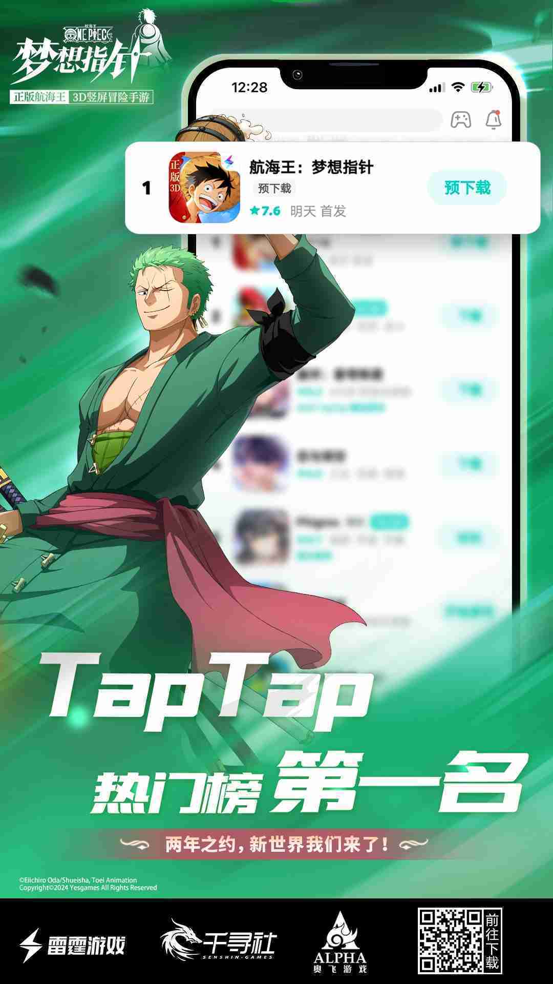 4月1日,,,,手游《航海王::梦想指针》正式公测,,上线仅2小时不到就登上了App Store免费榜Top1,,与TapTap热门榜第一。。。。