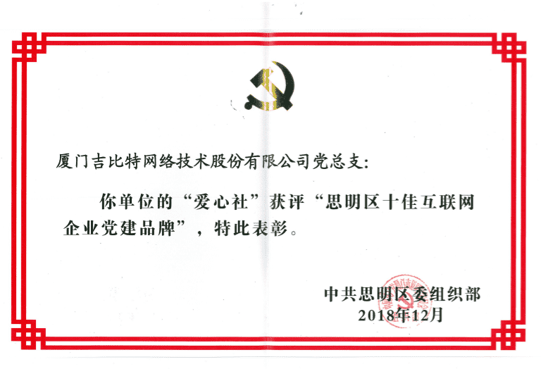 经初审评选、、、、网络评选和专家评审等环节,,"厦门1win网络技术股份有限公司党总支-爱心社" 从全区28个参评党建品牌中脱颖而出,,,,获评"思明区十佳互联网企业党建品牌"。。。